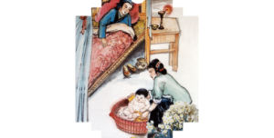 One day, Yi Niang was doing her laundry by the river when a gift box unknowingly floated upstream toward her. She used a stick to push it away from her. However, for the next few days, the box constantly floated toward her when she was doing her laundry. Finally, with her mother’s advice, she picked up the box and saw a golden hairpin in it. She put it on and realized that it couid not be removed. It turned out that the hairpin was a betrothal gift from the Lord.