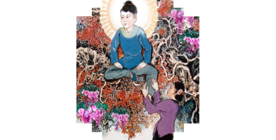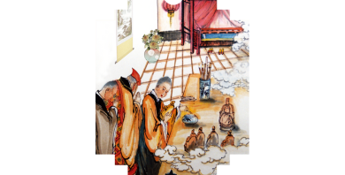 Three years later, following the advice of a geomancy master, Guo Zhongfu and his mother left the Yang family and found a place to live at the foot of Guo Mountain in Shishan, Nan’an. One day, while searching for medicine for his mother, Guo Zhongfu attained enlightenment and passed away while sitting on an ancient vine. He was only sixteen years old then. The day of his enlightenment was the third year of Tianfu during the Late-Jin dynasty (938 AD), on the 22nd day of the eighth lunar month.