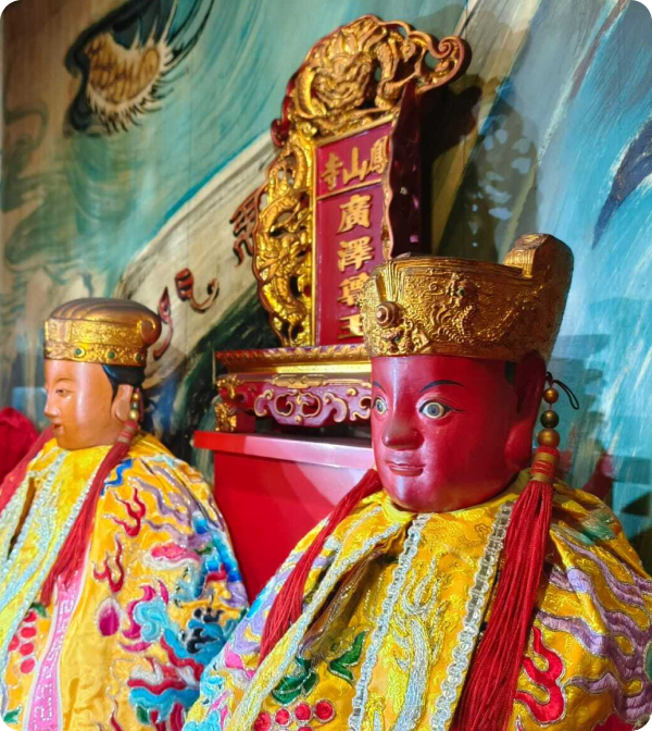 Moved by his filial piety, people built a temple at the place of his enlightenment, which became known as “Hong San See Temple.” They venerated him as a deity, respectfully calling him “Guo Sheng Wang”.