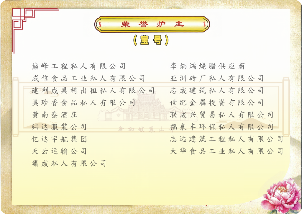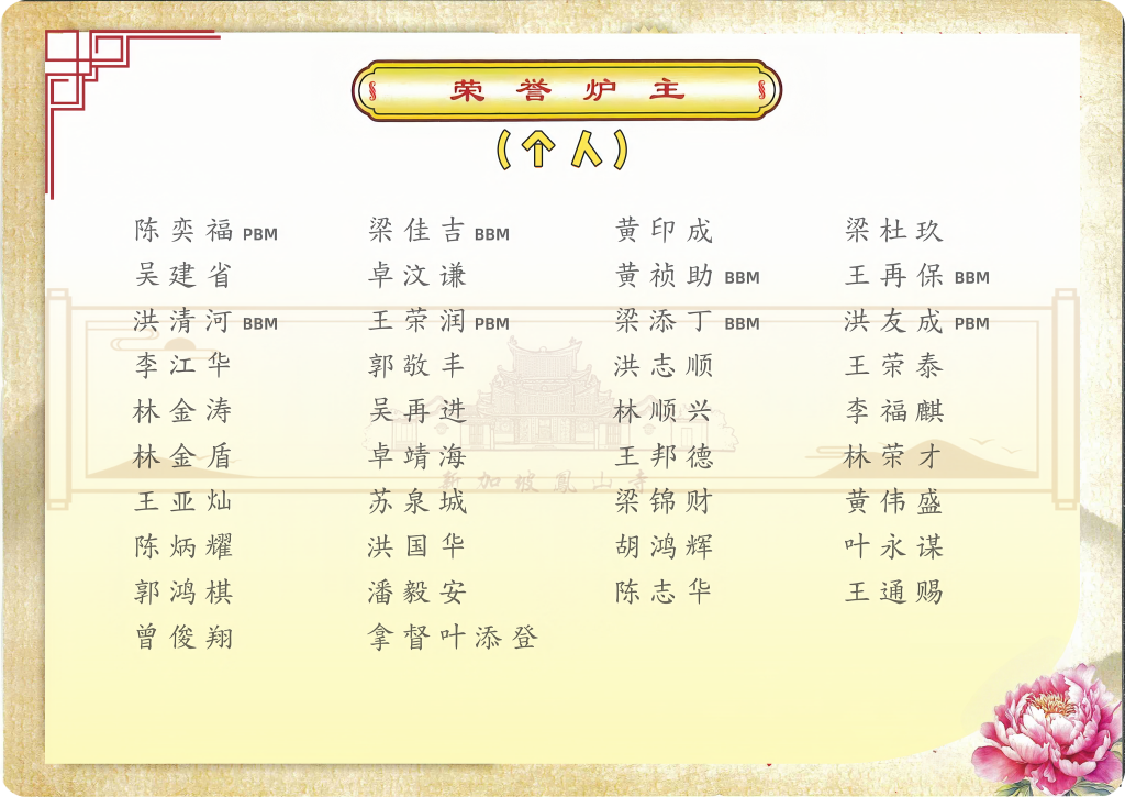 荣誉炉主、正副炉主、头家名单